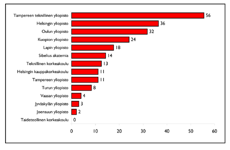 Kuten kuviosta 4 nähdään suurimmassa osassa yliopistoja