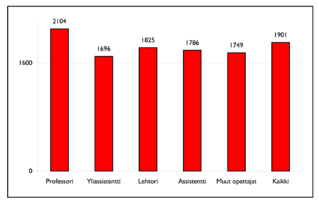 tuntia) ja professorien (71 tuntia) alakanttiin menneet keskimääräiset