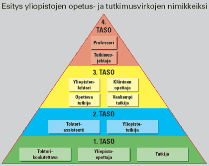 asioita. Opetus- ja tutkimusvirkojen porrastaminen neljään