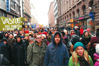 Yliopistolakia vastustava liike levisi koko maahanUutta yliopistolakia vastustava liike levisi tammi-helmikuun aikana koko maahan. Yleiskokouksia ja mielenosoituksia järjestettiin, puheenvuorojen sävy kiihtyi. Helsingin yliopistolla pidetyssä 500 yliopistolaisen yleiskokouksessa todettiin, että lausuntojen aika on ohi. 500 ihmistä ahtautui uutta yliopistolakia vastustavaan yleiskokoukseen Helsingin yliopiston suurimpaan luentosaliin Porthania ykköseen 29. tammikuuta. Yleisöjoukko koostui pääasiassa opiskelijoista, kun taas puheenvuorojen käyttäjien selvä enemmistö oli yliopiston henkilöstöä. Neljä opiskelijaa luki aluksi Opiskelijatoiminta- kollektiivin vetoomuksen “Lausuntojen aika on ohi – aika toimia!”: - Meitä yhdistää kokemus, että uudistusta on alusta lähtien ajettu läpi antamatta tilaa ja aikaa todelliselle asiantuntemukselle ja kriittiselle keskustelulle. Kuten Tieteentekijöiden liitto ja Professoriliitto ovat todenneet, yliopiston opetus- ja tutkimushenkilöstön lausunnoilla ei ole ollut lain sisältöön mitään vaikutusta. Siksi tämän yleiskokouksen akuutein kysymys on: voimmeko ja miten voimme pysäyttää helmikuussa eduskunnan käsiteltäväksi tulevan yliopistolakiesityksen? Kuinka voimme pysäyttää omassa yliopistossamme jo ennen lain hyväksymistä päätettäväksi tulevan johtosäännön uudistamisen? Kansainvälistä tuulahdusta tilaisuuteen toi professori Christopher Lloyd (The University of New England Australia). Lloyd on vierailevana professorina Helsingin yliopiston yhteiskuntahistorian laitoksella. Hän kertoi yliopistouudistuksen periaatteista ja vaikutuksista omassa maassaan. Lloyd muistutti, että uudistukset voivat olla aina vaarallisia aikoja – varsinkin taloudellisesti vaikeina aikoina. Australiassa talous saneli pitkälti uudistuksen linjat ja yliopistot ovat nykyisin lähes tyystin ulkopuolisen rahoituksen armoilla. Puhuja ei ollut ehkä täysin tietoinen Suomen tilanteesta, koska täällä valtio on sitoutunut edelleen huolehtimaan yliopistojen perusrahoituksesta – ainakin tämä hallitus on niin luvannut. Jatkosta ei tietysti ole varmuutta. Kaksi italialaista opiskelijaa kertoi lyhyesti maansa tilanteesta. Siellä opiskelijat ja henkilöstö ovat marssineet kaduilla. Viime syksynä yliopistolaiset pysäyttivät liikennettä ja tukkivat rautateitä. Kymmeniä tiedekuntia eri yliopistoissa oli vallattuina. Tavoitteena on, etteivät yliopistot soveltaisi uusia lakeja. Laajapohjainen komitea olisi tarpeen Suomalaisten puhujien sarjan aloitti Helsingin yliopiston oikeustieteellisen tiedekunnan dekaani Jukka Kekkonen. Hänen mielestään opetusministeriö on suhtautunut hyvin yliolkaisesti mm. oikeusoppineiden perusteltuihin lausuntoihin virkasuhteen säilyttämisestä. Professori Kekkonen moitiskeli myös Helsingin yliopiston omaa valmistelua. Hän kuvasi konsistorin (=hallituksen) marraskuussa tekemää päätöstä laitos- ja johtamisrakenteesta käskytysmalliksi. Kekkonen katsoi, että koko nimitysketju pitäisi miettiä uudelleen. - Yliopistolaitoksen historia on tuhatvuotinen. Haluamme vaalia sen parhaita kulttuurisia käytäntöjä ja perinteitä, Kekkonen kiteytti. Sosiologian professori Paavo Uusitalo piti opetusministeri Antti Kalliomäelle tammikuussa 2007 luovutettua Jorma Rantasen ja Niilo Jääskisen raporttia kaiken pahan alkuna. Uusitalo luonnehti raporttia ala-arvoiseksi ylityslauluksi päällikkövaltaiselle hallintomallille. Hänen mielestään selvitysmiehet eivät ymmärtäneet yliopiston ideaa. - Yliopisto on moraalinen yhteisö. Sen perusta on avoin keskustelu, Uusitalo muistutti ja sai yleiskokouksen raikuvimmat aplodit Yliopistouudistus on niin iso asia, että sitä jos mitä olisi professori Uusitalon mukaan tarvinnut valmistella laajapohjaisessa komiteassa. Nyt komitealaitos on tyystin sivuutettu, mutta Uusitalo katsoi, että asian voisi edelleen palauttaa komitean käsiteltäväksi. Uusitalo moitiskeli myös Helsingin yliopiston johtoa. Hänen mielestään yliopistolla ei ole ollut koskaan niin heikkoja rehtoreita kuin viime aikoina. Suuri puhallus ja suuri kaappaus Yhteiskuntatieteilijä Jussi Vähämäki löysi yliopistouudistuksen taustalta OECD:n ja EU:n raportit. Nyt on tarve panostaa “innovaatiodynamiikkaan” ja “vanhentunut säätely on päivitettävä”. - Autonomialle on määriteltävä uusi sisältö. Tarvitaan mekkalointia ja melua, kuten aina yliopistojen historiassa, Vähämäki totesi. Tutkija Matti Vesa Volanen Jyväskylän yliopistosta kuvasi yliopistolainuudistusta suureksi puhallukseksi ja suureksi kaappaukseksi. - Suuri puhallus se on siksi, että yliopistot saisivat muka omistaa itse itsensä. Mikä on yliopiston pääoma, sehän on meidän päässämme. Kun meidät työsuhteistetaan, pääomamme on yliopiston hallituksen käsissä. Volanen muistutti, että yliopistoa tulee rakentaa alhaalta ylös eikä toisinpäin. Helsingin yliopiston konsistorin jäsen, lehtori Pia Mänttäri puhui yliopistoyhteisön vaikutusmahdollisuuksista. Päättäjät ovat torjuneet lainvalmisteluun liittyvän kritiikin toteamalla, että yliopistot ovat tätä halunneet. Mutta mikä on yliopisto? Johto vai yhteisö? Mänttäri ihmetteli, miten yliopistojen hallitusten ulkopuolisenemmistöllä voi olla parempi käsitys yliopiston hyvästä kuin sisäisillä ryhmillä. Mänttäri piti myös tärkeänä, että kollegion koolle säädetään alaraja. Nyt esimerkiksi Itä-Suomen yliopistoon kaavaillaan kuuden hengen kokoista kollegiota. Miten heräillä opiskelijat ovat olleet? Puheenvuorojen lomassa ja niiden jälkeen käyty keskustelu oli vilkasta. Tosin yleiskokouksen puheenjohtajina toimineiden akatemiatutkija Martina Reuterin ja opiskelija Ilari Aulan piti välillä inspiroida myös opiskelijoita kysymään ja ottamaan kantaa. Professori Kalevi Mattila korosti tutkimuksen ja opetuksen vapautta. Työsuhteessa henkilöstölle on helpompi antaa kenkää. Akatemiatutkija Sara Heinämaa halusi,