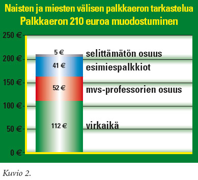 Miesprofessori tienaa 210 euroa naiskollegaa enemmänProfessoriliiton tuoreimman palkkaselvityksen mukaan miesten ja naisten keskipalkkojen erotus on 210 euroa miesten hyväksi. Euromääräinen erotus on jo vuosia pysynyt runsaan 200 euron tasolla. Kaikkien professorien keskipalkka marraskuussa 2009 oli yliopistojen toimittaman aineiston mukaan 6095 euroa. Palkkakehitys oli ansiotasoindeksin mukaista. Professoriliitto teettää vuosittain palkkaselvityksiä. Tämän vuoden tutkimusraportissa pyritään aikaisempia vuosia tarkemmin selvittämään naisten ja miesten välisiä palkkaeroja. Osana tätä tavoitetta pyydettiin yliopistoja nyt ensimmäistä kertaa ilmoittamaan professorien palkkatietojen rinnalla myös professorien virkaikä. Miesten ja naisten välinen keskipalkkojen erotus on 210 euroa miesten hyväksi. Euromääräinen erotus on jo vuosia pysynyt runsaan 200 euron tasolla, näin siitä huolimatta että prosenteissa mitattuna on naisten palkkakehitys kuitenkin ollut hieman nopeampaa. (Kuvio 1.) Professorien palkka kohoaa selvästi 10 ensimmäisen virkavuoden aikana. Miesten pidempi virkaura selittääkin noin puolet miesten ja naisten välisestä palkkaerosta. Merkittävä tekijä palkkaerojen taustalla on myös palvelussuhteen määräaikaisuus, sillä mvsprofessorien osuus naisten keskuudessa (26%) on selvästi suurempi kuin miesten keskuudessa (19%). Mvs-professorien palkka jää noin 800 euroa alhaisemmaksi kuin virkaan nimitetyillä professoreilla. Kolmas palkkaeroihin vaikuttava tekijä on esimiespalkkio. Miehet saavat esimiespalkkiota naisia useammin ja miesten keskimääräiset palkkiot ovat myös hieman suurempia. (Kuvio 2.) Palkkakehitys noudattaa yleistä ansiotasoindeksiä Kaikkien professorien keskipalkka marraskuussa 2009 oli yliopistojen toimittaman aineiston mukaan 6.095 euroa. Kyseessä on UPJ:n mukainen palkka Henki- ja Vaati-osineen tai vaihtoehtoisesti yksilöllinen sopimuspalkka, lisättynä esimiespalkkiolla ja muilla säännöllisesti maksettavilla lisillä. (Kuvio 3. ja 4.) Edelliseen vuoteen verrattuna keskipalkka kohosi 181 euroa eli 3.1%. Edellisen vuoden tavoin professorien palkkakehitys noudatti hyvin tarkasti Tilastokeskuksen yleistä ansiotasoindeksiä, joka kohosi vuoden 2009 aikana 3.0%. Yliopistojen toimittaman aineiston perusteella on myös laadittu yliopistojen välinen palkkavertailu, jossa yliopistot on asetettu kaikkien professorien keskipalkan mukaiseen järjestykseen. (Kuvio 5.) Tyytyväisyys omaan palkkaan on aikaisempaa korkeampi Palkkaansa tyytyväisten professorien osuus on vuosittain tasaisesti kohonnut ja tässä kohdin näkyy selvästi etenkin UPJ:n mukanaan tuomien korotusten myönteinen vaikutus. Nyt palkkaansa tyytyväisten professorien osuus (42%) on nyt korkeampi kuin kertaakaan aikaisemmin; tämä osuus on nyt lähes kaksikertainen vuoden 2001 palkkatutkimukseen (22%) verrattuna. Tyytyväisyyttä tarkasteltaessa vastaajat jaettiin kvartiileittain neljään ryhmään. Tässä tarkastelussa tulee selvästi esiin nykyisen palkan vaikutus tyytyväisyyteen, sillä tyytyväisten osuus kohoaa tasaisesti alimman kvartiilin 27 prosentista ylimmän kvartiilin 57 prosenttiin. Aineistossa 2398 professorin tiedot Professoriliiton vuosittaiset palkkakyselyt toteutettiin jälleen marraskuussa 2009. Perinteiseen tapaan tietoa palkoista kerättiin sekä jäseniltä että työnantajailta. Yliopistoille kohdistetussa kyselyssä työnantajia pyydettiin ilmoittamaan professorien palkkatiedot marraskuulta 2009. Palkkatiedot pyydettiin virka- ja palvelussuhdekohtaisesti eriteltyinä erikseen virkaan nimitettyjen ja mvs-professorien osalta. Yliopistojen toimittama aineisto käsittää yhteensä 2398 professorin palkkatiedot. Vertailukelpoista aineisto on kerätty vuodesta 2003 lähtien. Samanaikaisesti toteutettiin myös rinnakkainen, Professoriliiton jäsenille kohdistettu palkkakysely. Jäsenille kohdistettua kyselyä on nykyisessä muodossa toteutettu vuodesta 2001 lähtien. Jäsenkysely ja yliopistojen toimittamat aineistot täydentävät toisiaan ja yhdessä ne antavat hyvin kattavan kuvan professorien palkkauksesta. Palkkakyselyn tuloksista koostetaan raportti, joka perinteiseen tapaan postitetaan kaikille Professoriliiton jäsenille. Yrjö Lauha