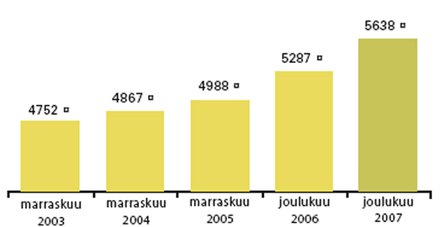 joulukuussa 2007 yli 5600 euroa. Korotusta