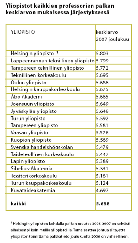 on myös laadittu yliopistojen välinen palkkavertailu,