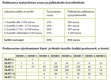 Professoriliiton jäsenille kohdistettu palkkakysely.