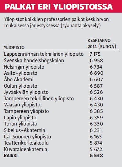 Kaikkien professorien keskipalkka joulukuussa 2011