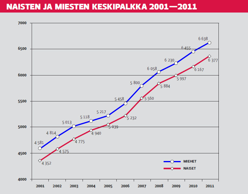 on nyt 261 euroa miesten hyväksi. Palkkaerojen perusteella