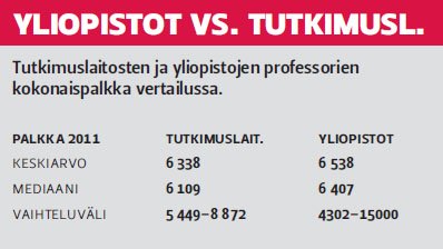 varaa, mutta palkat ilmoittaneiden viiden tutkimuslaitoksen