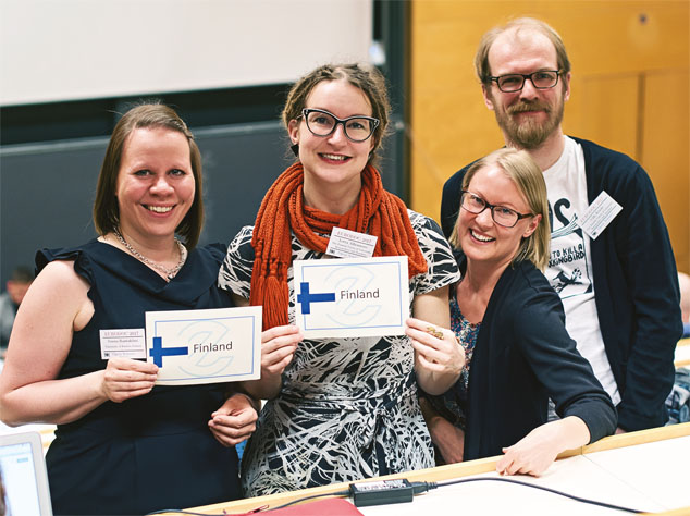 Sanna Rantakömi, Lotta Alhonnoro, Miia Ijäs ja Ville Keiski edustivat Oslossa Eurodocin kokouksessa Suomea. Kuvasta puuttuu Fulvio Rizzo.