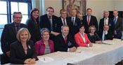 Koulutus ja tutkimus eduskuntavaalien teemoiksiProfessoriliiton ja Tieteentekijöiden liiton edustajat tapasivat eduskunnan sivistysvaliokunnan sekä valtiovarainvaliokunnan sivistys- ja tiedejaoston jäseniä 16. lokakuuta Eduskuntatalossa. Keskustelun teemoina olivat yliopisto- ja tiedebudjetti 2015, liittojen yhteiset hallitusohjelmatavoitteet sekä tutkimus- ja innovaatiopolitiikan suuntaviivat. Ensi vuoden talousarvioesitys on paraikaa eduskuntakäsittelyssä. Tutkimus- ja innovaationeuvosto valmistelee linjaraporttia. Perinteisesti kyseistä raporttia on pidetty seuraavan hallitusohjelman tiedepolitiikkaa määrittävänä pohjapaperina. Kansanedustajat ymmärsivät liittojen näkemyksen siitä, että yliopistojen ja tieteen rahoituksen pitää olla pitkäjänteistä. Yhteinen toive oli se, että sivistys ja tiede näkyisivät enemmän tulevien eduskuntavaalien teemoina. Ruotsin parlamenttivaalien alla koulutuskysymykset olivat vahvasti esillä. Kevään vaalien läheisyys kävi ilmi keskustelun kulussa: päähallituspuolueiden välillä oli selvää kiistaa muun muassa siitä, miten korkeakoulujärjestelmän tuleva rakenne näkyy puolueiden tekemissä linjauksissa. Paikalla olleet kansanedustajat ilmoittivat kuitenkin tukevansa liittojen näkemyksiä duaalimallin tärkeydestä. Ammattikorkeakoulut ja yliopistot voivat tehdä yhteistyötä, mutta niiden erilaiset tehtävät ja tutkinnot tulee säilyttää. Ajatuksia vaihdettiin myös koulutusviennistä, kansainvälisten opiskelijoiden maksuista sekä lukioiden ja yliopistojen tärkeästä yhteistyöstä. Myös tiedestrategia nousi esille. Ensimmäisenä sen tarpeellisuuden otti keskusteluun sivistysvaliokunnan varapuheenjohtaja Inkeri Kerola (kesk). Asiasta jatkoi sivistysvaliokunnan puheenjohtaja Raija Vahasalo (kok), joka antoi tapaamiseen päätteeksi kotiläksyjä sekä liitoille että paikalla olleille kansanedustajille: — Tehkää meille tiedestrategia niin me nostamme koulutus- ja tiedepolitiikan vaalien alla agendalle. Kansanedustajille jaettiin paperit, joihin oli tiivistetty liittojen keskeisiä linjauksia: Ajankohtaista yliopisto- ja tiedepolitiikasta sekä Hallitusohjelmatavoitteet. Ne löytyvät kummankin liiton verkkosivuilta. Kirsti Sintonen