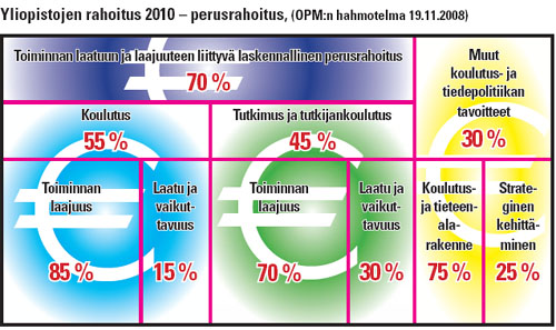 tuloksellisuus heijastuu yksittäisen yliopiston saamaan rahoitukseen. Kustannuskertoimista luovutaan.
