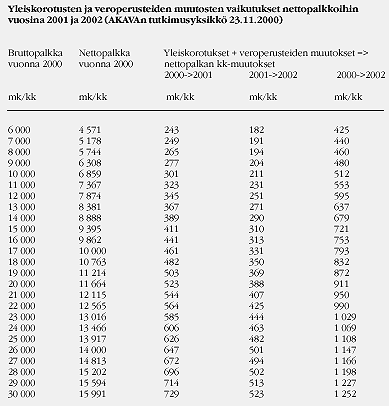 Veroperusteet 2002: Hallituksen kannanoton 21.11.2000 mukaan