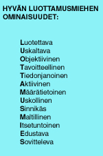 ominaisuuksista, jotka hän on kiteyttänyt seuraavaan muotoon:
