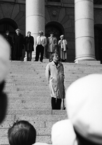 Parhaimmillaan Eduskuntatalon portailla seisoi aurinkoisessa