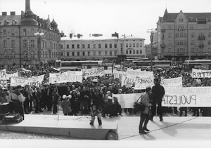 tuhatkunta yliopiston ja teknillisen korkeakoulun jäsentä. Mielenosoitus
