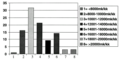 sangen matala, keskimäärin 14 700 mk/kk. Tämä