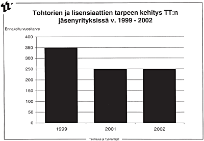 1999 lukuihin verrattuna TT:n jäsenyritysten innokkuus tohtoreitten
