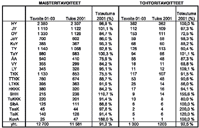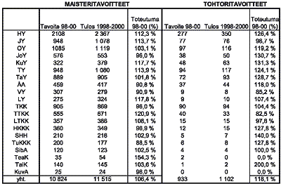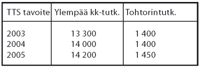tavoite oli 10 824 ylempää korkeakoulututkintoa ja tohtoritutkintojen