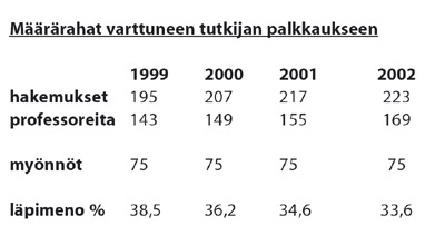 mm. määrärahoja varttuneiden tutkijoiden palkkaukseen.