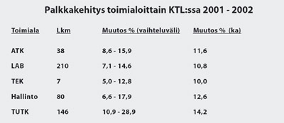 palkat ovat nousseet 2001-2002 noin 14 prosentilla. (Ks. taulukko.)