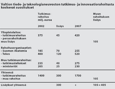 "Valtion tiede- ja teknologianeuvosto esitti joulukuussa 2002,
