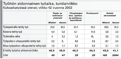 tekevien akavalaisten työviikko. (Ks. taulukko.)