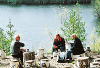 kolmeksi päiväksi mökkeihin kirkasvetisen Hietalammen