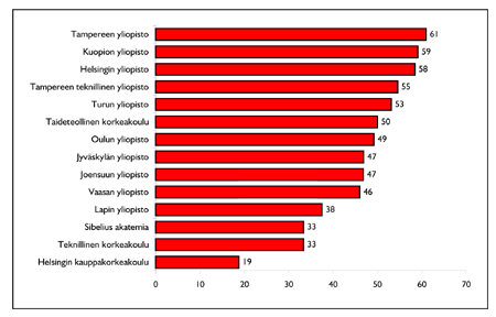 Kuten kuviosta 4 nähdään suurimmassa osassa yliopistoja