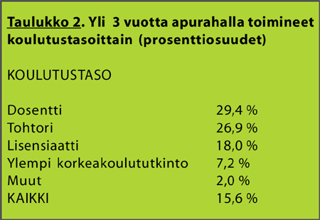 jossain vaiheessa apurahalla. (Taulukko 2.)