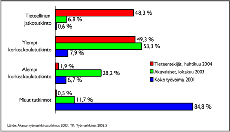joka neljännellä on tieteellinen jatkotutkinto. Kaikki