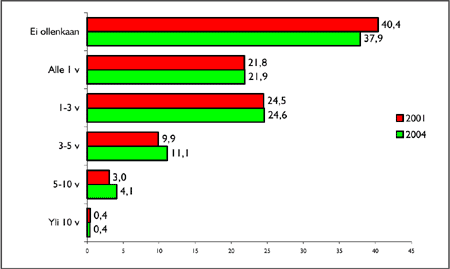 on lisääntynyt (48 % vuonna 1998 ja 60 % vuonna 2001).