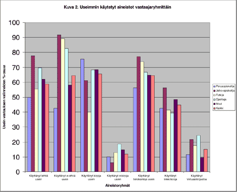 kuva 2.). Kirjat ovat kaikkein käytetyin aineisto, mutta