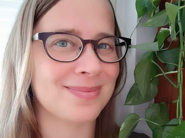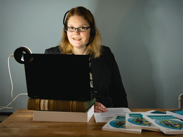 dosentti Jonna Kangas korona-ajan työpisteellään (Kuva: Veikko Somerpuro)