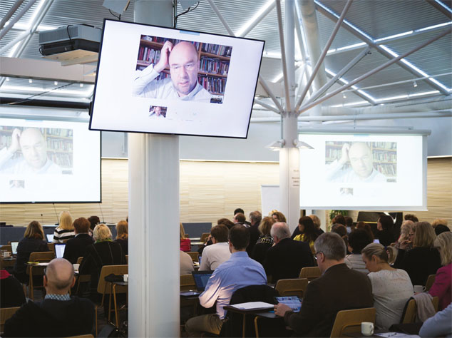 Koulutusjohtaja Heljä Misukka OAJ:sta teki selkoa siitä, miksi järjestö ajaa osaamiskeskittymiä. Pohjustuksena seinälle heijastui OKM:n koostama Suomen kartta, jossa oli pisteiden kirjona kaikki yliopistot, yliopistokeskukset, ammattikorkeakoulut, tutkimuskeskukset ja niiden sivutoimipisteet.