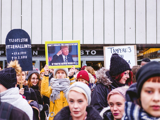 Tampereen yliopistolla osoitettiin helmikuussa 2018 mieltä johtosääntöä vastaan.