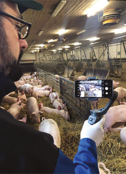 Kliininen opettaja Claudio Oliviero on tehnyt tänä keväänä sikojen terveystarkastuksia älypuhelimen, kuvanvakaajan, kamerajalustan ja hands free -mikrofonin kanssa.