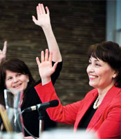Panelistit lupasivat kirjata yliopistojen perusrahoituksen hallitusohjelmaanKevätseminaaripäivän päätti kuuden puolueen vaalipaneeli. Siinä olivat mukana Outi Alanko-Kahiluoto (vihreät), (perussuomalaiset), Timo Laaninen (keskusta), Heikki Patomäki (vasemmistoliitto), Pilvi Torsti (SDP) ja Raija Vahasalo (kokoomus). Kahta päivää ennen vaaleja pidetty paneeli oli kaikille kampanjoinnin viimeinen. Alanko-Kahiluoto ja Torsti kertoivat olleensa noin parissakymmenessä eri paneelikeskustelussa. Juontajana, toimittaja Kirsi Heikel aloitti kyselemällä yliopistouudistuksesta. Hän oli lukenut Raija Vahasalon blogia, jossa tämä ihmetteli, miksi yliopistoissa menee nyt enemmän aikaa lippusten ja lappusten täyttämiseen, vaikka toisin piti käydä. Tuliko byrokratian määrä yllätyksenä? — Lippusen ja lappuset johtuvat varmaan alkutaipaleesta. Keväällä 2012 tarkastellaan lain vaikutuksia, Vahasalo vastasi. Heikel tiedusteli pääministeripuolueen puoluesihteeri Timo Laanisen kantaa uudistuksen onnistumiseen. Matti Vanhasen kaudella Laaninen toimi pääministerin avustajana. — Yliopistouudistus oli hallitusohjelmassa mainittu hanke. Jo omana opiskeluaikanani 1970- ja 80-luvuilla yliopistoissa toivottiin autonomian vahvistamista. Nyt siihen huutoon vastattiin. Kajaanissa törmättiin sitten kipupisteeseen eli siihen, mitä lisäautonomian antamisesta oikein seuraa. Kannamme sillä alueella poliittisen vastuun ja tulemme menettämään ääniä, Laaninen ennusti. Alanko-Kahiluodon mielestä kokoomus petti lupauksensa siinä, että yliopistouudistuksen jälkeen tuottavuusohjelman ei enää pitänyt koskea yliopistoja. Iso reformi laitettiin kuitenkin alulle demariopetusministeri Antti Kalliomäen aikana. Pilvi Torstin mukaan lain tarve tunnustettiin, mutta sen toteutus onkin sitten eri asia. Heikki Patomäki lupaili, että vasemmistoliitto aikoo avata lain ja kääntää kehityksen suunnan. Torsti ei kannattanut lain avaamista. — Silloin olisi pelkona, että EK voisi saada läpi vaatimuksensa kokonaan ulkopuolisista hallituksista, hän näki. Professori emeritus Erkki Havansin mielestä yliopistouudistus on toiseksi pahinta, mitä yliopistoille on tapahtunut. Pahinta oli Turun Akatemian palo. Kirsi Heikel kysyi panelisteilta, mitä kohtia yliopistolaista joutaisi pöydälle pistettäväksi? Havansia jurppi hallinnon paisuminen ja yliopistojen sisäisen byrokratian kasvu. — Se ei välttämättä johdu lakitekstistä, mutta asia pitää hoitaa suhteessa opetusministeriöön. Alanko-Kahiluoto kysyisi ensin yliopistolaisilta, mitä pitää tehdä. Hän on huomannut, että kollegion ja hallituksen välinen suhde on jäänyt osaksi epäselväksi. Raija Vahasalo parantaisi opettajien ja opiskelijoiden lukumääräsuhdetta ja tutkijoiden uramahdollisuuksia. Patomäki palauttaisi kolmikantademokratian. Torsti puuttuisi määräaikaisuuksien määrään ja kestoon. Laaninen ilmoitti keskustan tavoittelevan opetusministerin salkkua. Juontaja kysyi muidenkin puolueiden edustajilta kiinnostusta opetusministerin pestiin ja kaikki nostivat kätensä. Kirsi Heikel oli käynyt läpi puolueiden vaaliohjelmat ja ihmetteli mm. Vahasalolle, miksi yliopisto- ja tiedepolitiikkaa ei ihmeemmin näy kokoomuksen vaaliohjelmassa. Vahasalo puolestaan kummasteli, mitä ohjelmia Heikel oikein oli lukenut. Vahasalo oli tutustunut Professoriliiton ja Tieteentekijöiden liiton hallitusohjelmatavoitteisiin ja kannatti niitä. Keskusta korosti vaaliohjelmassaan alueellista korkeakouluverkkoja ja perisi lukukausimaksuja EUja ETA-alueen ulkopuolisilta opiskelijoilta. — Tyhmää olisi olla ottamatta rahaa kiinalaisilta, Laaninen lisäsi. — Rahat pois EU- ja ETA-alueen ulkopuolisilta. Emme voi olla sosiaaliluukku, Havansi jatkoi. Perussuomalaiset haluaisivat kanditutkinnon yliopistolliseksi perustutkinnoksi. Vahasalo piti tätä hirvityksenä eikä päästäisi koko puoluetta hallitukseen moisen vaatimuksen vuoksi. — Ei ole kynnyskysymys, Havansi kiiruhti reagoimaan ja nauratti yleisöä. Opetus- ja kulttuuriministeriö asetti maaliskuussa työryhmän pohtimaan yliopistojen uutta rahoitusmallia. Etukäteen on ennakoitu, että valmistuneiden työllistymisen painoarvo rahoituskriteerinä kasvaa. Heikki Patomäki ei kannattanut työllistymistä rahoituksen mittarina. Hän katsoi, että rahoituksen sitominen ennalta määrättyihin kannustimiin vinouttaa aina järjestelmää. — Opiskelijat saavat opiskella niin pitkään kuin haluavat. Mutta opintosuoritusten vanhenemissäännöksiä voisi miettiä. Timo Laaninen piti perusteltuna, että ihmiset valmistuvat kohtuuajassa. Tähän tarvitaan ennen kaikkea pienempiä opetusryhmiä ja parempaa ohjausta. Juontaja kysyi, pitäisikö perusrahoituksen turvaaminen kirjata hallitusohjelmaan. Kaikkien kädet nousivat ylös. Alanko-Kahiluoto piti kirjaamista tärkeänä, koska sellaiset asiat eivät toteudu, mitkä eivät näy hallitusohjelmassa. Vahasalo kehui yliopistoindeksiä ja katsoi, että perustutkimuksen rahoitus on nyt liian lyhytjänteistä. Patomäki siirtäisi Suomen Akatemian ja Tekesin kautta kierrätettävästä rahoituksesta 70 prosenttia suoraan yliopistojen perusbudjettiin. Hän myös toivoi, että opetus- ja kulttuuriministeriö selvittäisi kokonaiskustannusmallin ohjaavia vaikutuksia. — Mitä vähemmän rahoitus on riippuvainen bisnesmaailmasta, sen parempi, Havansi lisäsi. Lopuksi puhuttiin mahdollisista leikkauskohteista, koska taloudellinen tilanne on tiukka. — En lähde luettelemaan leikkauskohteita, koska Kiviniemikään ei sitä tehnyt. Nyt meillä on sellainen tyyli, että puoluesihteeri tukee puheenjohtajaa, Laaninen hauskutti yleisöä. Alanko-Kahiluoto löytäisi ammattikorkeakoulujen filiaaleista tiivistämismahdollisuuksia. — Kuka ei leikkaisi korkeakouluilta, Heikel kysyi panelisteilta. Vain Havansin ja Patomäen kädet nousivat. — Korkeakouluja pitää olla impivaarassakin, Havansi tähdensi. teksti Kirsti Sintonen