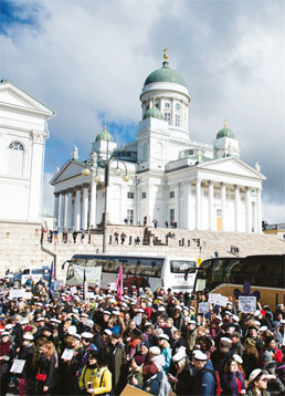 Myös Suomessa marssiin sekoittui protestimielialaa.