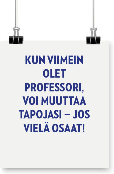 — Haluamme vaikuttaa yhteiskuntaan, joten arvostamme tulosten siirtämistä käytäntöön. Tutkijat eivät kirjoittele vain toisilleen. Kuitenkaan loputon tutkijoiden mittaaminen ja pienentäminen numeroiksi ei ole hyväksi, hän päättelee.
