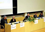 Yliopistot tarvitsevat suunnitelman tieteen popularisointiinJyväskylän valtakunnallisessa ”Tieteestä totuudeksi” -seminaarissa rohkaistiin tutkijoita tuomaan tiedettä kansan ulottuville. Tiedottavatko ja keskustelevatko tiedeyhteisöt riittävän aktiivisesti tieteen tuloksista? Näkyvätkö tietyt alat julkisuudessa enemmän kuin toiset? Voiko tiede olla viihdettä? Muun muassa näitä kysymyksiä puhujat ja yleisö pohtivat 7.5. valtakunnallisessa Kielikampuksen ”Tieteestä totuudeksi”-seminaarissa Jyväskylän yliopistossa. Koulutus- ja kehittämiskeskus Palmenian johtaja Pirjo Hiidenmaan mukaan yliopistoissa tarvitaan asennemuutos. Puheessaan hän ihmetteli, miksi yliopistot eivät ole tehneet mitään sisäistä suunnitelmaa tieteen popularisoinnista — vaan olettavat, että asiat hoituvat kuin itsestään. Toiminta on täysin sattumanvaraista: ei ole koulutusta, ei laatukriteereitä eikä työnjakoa. — Ne tieteenalat, joilla on innokkaita kertojia, kirjoittajia ja esiintyjiä, ovat esillä. Tarpeen tullen turvaudutaan aina samoihin ihmisiin eli niihin, joiden tiedetään olevan valmiiksi kiinnostuneita. Suuri yleisö tietää muutamia yksittäisiä tutkijoita, kuten Kari Enqvistin ja Esko Valtaojan. — Kaikki kiitos heille, sillä he ovat innostuneita ja taitavia sekä harjaannuttaneet kykyjään. Ongelmallista on, että jos jollain alalla ei ole sen alan Keltikangas- Järvistä tai Enqvistiä, sieltä ei tipu juuri mitään tietoa ulospäin. Jos yliopistoissa osataan sopia työnjaosta tutkimuksessa ja opetuksessa, miksei myös tieteen popularisoinnissa? Ei mikään kolmas tehtävä Jyväskylän yliopiston rehtori Matti Manninen kertoi pitkään ihmetelleensä, miksi tieteen popularisoinnista ja yhteiskunnallisesta vaikuttamisesta puhutaan aina yliopiston kolmantena tehtävänä. — Joskus yritin selvittää, mistä tuo puhe kolmannesta tehtävästä tulee. Tutkin nykyisen ja edellisenkin yliopistolain. Ei missään ole sanottu, että yliopistolla on kolme tehtävää. Yliopiston tehtävät ovat opetus ja tutkimus, mutta yhteiskunnallisen vaikuttamisen tulee sisältyä kaikkeen toimintaan. Mannisen mukaan Jyväskylän yliopistolla on parantamisen varaa: kansainvälisiä vertaisarvioituja tiedejulkaisuja ilmestyi viime vuonna 1 400 ja suomenkielisiä 700—800, mutta tiedettä popularisoivia artikkeleita alle 200. Toisaalta luvuissa eivät näy tutkijoiden haastattelut ja lehtijutut, jotka ovat Mannisen mukaan vähintään yhtä tärkeitä kuin tiedettä popularisoivat artikkelit. Lehtijutut nostavat yliopiston mainetta ja vaikuttavat opiskelijarekrytointeihin. Jyväskylän yliopistossa keskustellaan parhaillaan siitä, pitäisikö opiskelijoita kouluttaa jo maisterivaiheessa popularisoimaan tutkimustaan siten, että he tekevät pro gradustaan lehdistötiedotteen. Mannisen mukaan selvityksen alla on, voisiko se korvata maturiteetin. Lehdistötiedotteet voitaisiin koota yliopiston omaan arkistoon, jossa ne ovat myös tiedotusvälineiden saatavilla. Tiedeyhteisön pelko estää popularisointia Yleisö osallistui vilkkaasti tilaisuudessa käytyyn paneelikeskusteluun ja sai äänestää. Kaksi kolmesta oli sitä mieltä, että fakta vaikuttaa enemmän päätöksiin kuin fiktio — ja saman verran oli sitä mieltä, että asiantuntijaa tulisi uskoa. Valtaosa, 95,9 prosenttia, oli sitä mieltä, että tiede voi olla viihdettä. Paneelin osallistuneen Tiede-lehden päätoimittajan Jukka Ruukin mukaan raja menee siinä, että viihde ei saa olla itsetarkoitus. — Viihdyttävyys on sitä, että teksti on helpoksi omaksuttavissa. Ydin kuitenkin säilyy, totesi Keskisuomalaisen pääkirjoitustoimittaja Anita Kärki. Miksi tutkijat eivät tuo tiedettä esille enemmän? Miksi tekstit ovat usein vaikeaselkoisia? Keskustelussa nousi esille monia syitä: populaarijutuista ei saa palkkaa ja ammattislangi on haaste. Entisen toimittajan, kansanedustaja Eila Tiaisen mukaan taustalla on pelko: tutkija pelkää muiden tutkijoiden reaktioita. Monissa puheenvuoroissa toivottiin kollegoilta lisää tukea. Toisaalta tutkija saattaa kuvitella, että yksinkertaistaen ja havainnollistaen kirjoitettu teksti vie pohjan asiantuntijuudelta. — Todellisella asiantuntijalla on kristallinkirkas käsitys tutkimuksestaan, totesi Selkokeskuksen johtaja Leealaura Leskelä. Fysiikan professori Jukka Maalammen mukaan tieteenalat eivät ole tasavertaisia siinä, miten helppo tutkimuksia on yleistajuistaa. Luonnontieteilijä joutuu usein ottamaan humanistia pidemmän loikan omalta reviiriltään. Vaikka tulokset perustuvat mittauksiin, tulkinta on usein epävarmaa. — Mielellään tiedemies ei esitä jyrkkiä totuuslausumia sen vuoksi, että mennessään seuraavana päivänä laitokselle hänelle hymyillään vinosti, Maalampi totesi. Haasteena on, että toimittajat haluaisivat, että asiat ovat joko-tai eivätkä sekä-että. Jukka Ruukin mukaan tiedettä voisi kutsua suureksi savolaiseksi: ”saattapi olla että on, saattaapi olla ettei.” — Olisiko meidän pitänyt muuttaa tämän seminaarin nimi? ”Tieteestä totuudeksi — toistaiseksi”, heitti paneelikeskustelua vetänyt yliopistonlehtori Vesa Jarva, ja sai yleisön nauramaan. Leealaura Leskelän mukaan tieteellisen epävarmuuden ei pitäisi olla este tieteen popularisoinnille, sillä senkin tutkija voi selvästi tuoda esiin. Tärkeintä on, että viesti on kirkas ja kaikkien ymmärrettävissä. teksti Mari Heikkilä