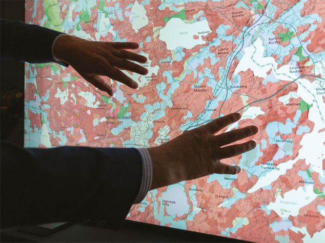 Suurta MultiTouch-kosketusnäyttöä hyödyntävä karttasovellus toteutettiin osana Tekes-rahotteista MenoMaps-projektia Luontokeskus