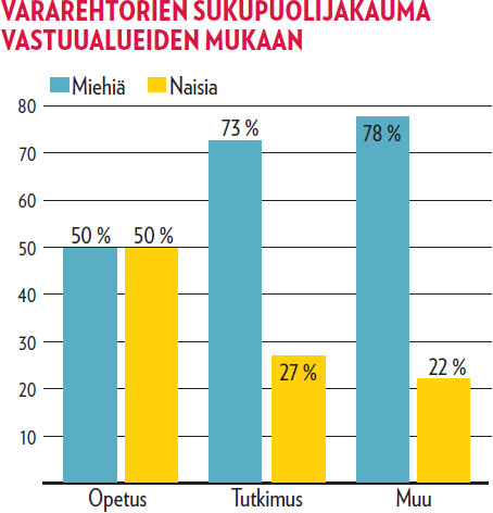 — Esimerkiksi tutkimuksesta vastaavista vararehtoreista naisia on vain 27 prosenttia. Tämä viittaa siihen, että yliopistojen rehtorit ovat jatkossakin useammin miehiä, Niemelä sanoo.