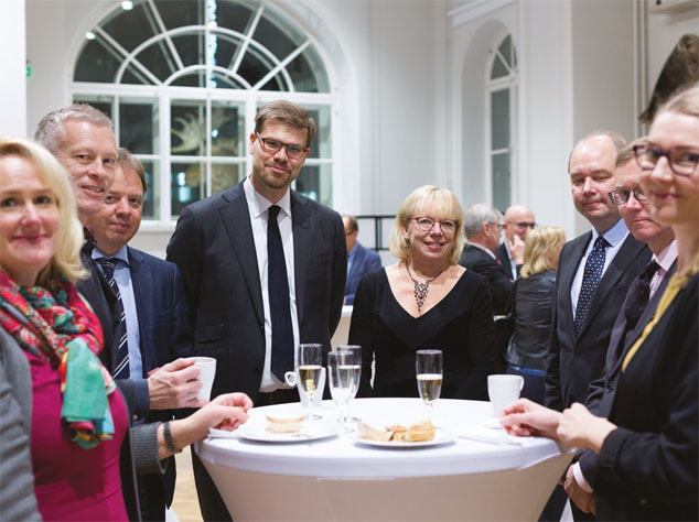 Kuvassa onnittelijoita ja