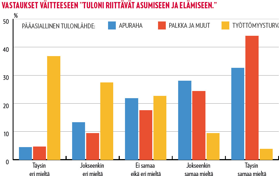 Myös alhainen ansiotaso vaikeuttaa monien toimeentuloa: 14 %:lla palkasaajista ja 18 %:lla apurahatutkijoista oli vaikeuksia saada tulonsa riittämään elämiseen ja asumiseen. Lasten tai lasten ja puolison kanssa asuvat raportoivat näistä vaikeuksista muita useammin. Työn ja perhe-elämän yhdistäminen näyttäisi olevan ongelmallista tutkijanuran alkutaipaleella, ja vastaajat kaipasivat tähän tukea. Yli kolmannes naisista vastasi lykänneensä lasten saantia uraan liittyvien seikkojen vuoksi — miehistä näin vastasi hieman yli viidennes.