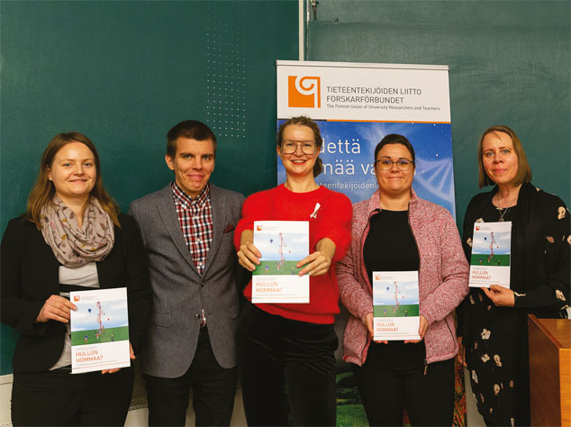 Hullun hommaa? Tieteentekijöiden liiton kysely nuorille tutkijoille 2017 -raportti julkistettiin Helsingin yliopiston tieteentekijöiden ja Tieteentekijöiden liiton järjestämässä Agora-keskustelutilaisuudessa Helsingin yliopistossa 16.11.2018. Kyselyyn vastasi 1870 nuorta tutkijaa, joista noin kolme neljännestä oli väitöskirjatutkijoita ja vajaa neljännes hiljattain väitelleitä.