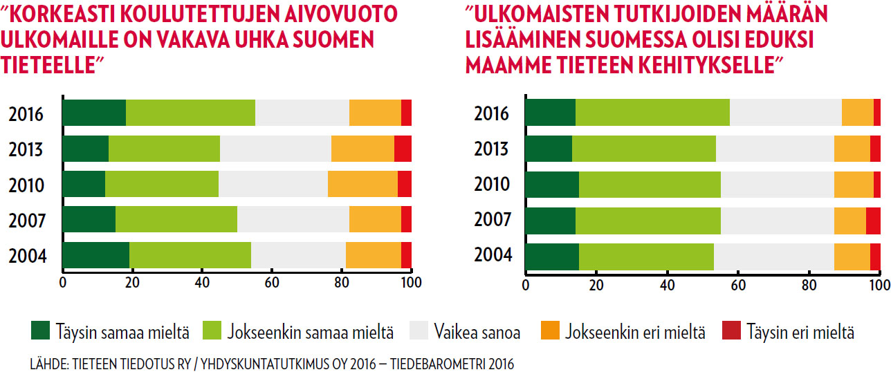 Uutta lienee se, että korkean akateemisen statuksen omaavat lähtevät sen vuoksi, että työnteon olosuhteet ovat menneet täällä huonoiksi. Yksi mielenkiintoinen kysymys on se, miten tiiviiksi muuttajat järjestävät yhteydet entiseen kotiyliopistoon ja onko palaajia?